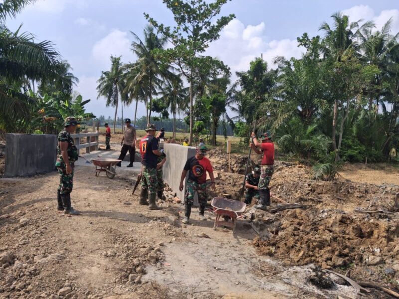 Langkat, AgaraNews.com // Peluh mengalir di bawah terik matahari Desa Pasar Rawa, Kecamatan Gebang. Personel TNI, Polri, dan warga bergerak cepat merampungkan pembangunan jembatan dalam program TNI Manunggal Membangun Desa (TMMD) ke-128 Kodim 0203/Langkat.