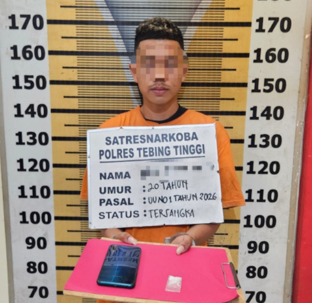 Penangkapan dilakukan setelah personel Satresnarkoba Polres Tebingtinggi menerima informasi dari masyarakat terkait adanya dugaan transaksi narkotika di lokasi tersebut. Informasi tersebut langsung ditindaklanjuti dengan melakukan penyelidikan dan berhasil mengamankan terduga pelaku.Kasat Resnarkoba Polres Tebingtinggi, AKP Jimmy R. Sitorus, S.H., menyampaikan bahwa dari hasil penggeledahan itu, petugas menemukan barang bukti berupa satu plastik klip transparan berisi narkotika jenis sabu dengan berat 1,40 gram serta satu unit handphone merek Vivo warna biru.