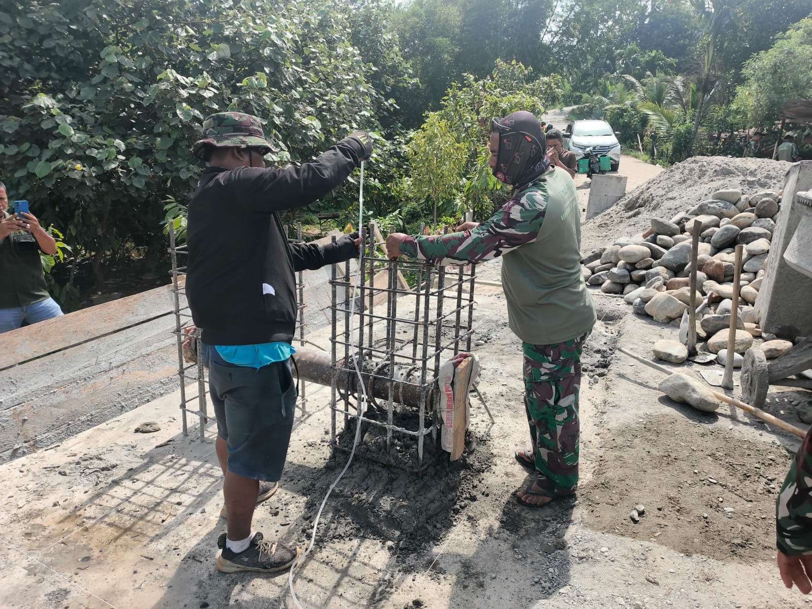 Sinergi antara aparat dan warga menjadi salah satu faktor penting dalam mendukung kelancaran pembangunan di lapangan. Selama pelaksanaan kegiatan, situasi di lokasi terpantau aman dan terkendali. Kondisi cuaca sejak pagi hingga sore hari dilaporkan cerah, sehingga sangat mendukung kelancaran pekerjaan.