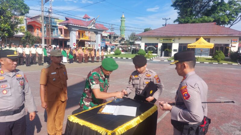 Dairi, AgaraNews.com//Danramil 02/Sidikalang Kapten Inf T. Aritonang mewakili Dandim 0206/Dairi menghadiri Appeal Deklarasi Sabuk Kamtibmas yang dirangkaikan dengan Simulasi Sistem Pengamanan Kota (Sispamkota) di halaman Mapolres Dairi, Jalan Sisingamangaraja, Kecamatan Sidikalang, Kamis (30/4/2026) pukul 08.00 WIB. Kegiatan yang digelar Polres Dairi ini menjadi bagian dari upaya memperkuat sinergi lintas sektor dalam menjaga stabilitas keamanan dan ketertiban masyarakat di wilayah Kabupaten Dairi.