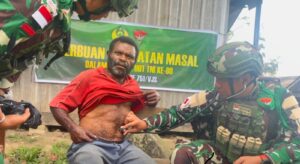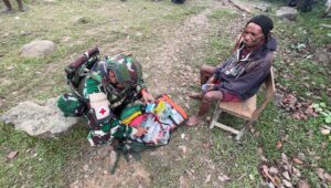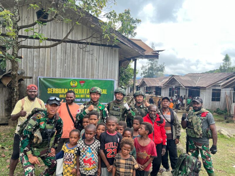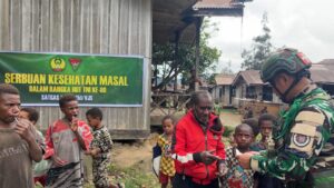 Kampung Polsam, Pegunungan Bintang —, AgaraNews.com // Dalam rangka memperingati HUT Kesehatan Angkatan Darat (Kesad) ke-80, Satgas Yonif 751/Vira Jaya Sakti (VJS) mengadakan pengobatan massal bagi warga Kampung Polsam. Kegiatan dipimpin langsung Kapten Ckm Lisan Gigih selaku Dokter Satgas Yonif 751/VJS dan mendapat sambutan hangat serta antusiasme tinggi dari masyarakat.(Minggu,26/10/2025).