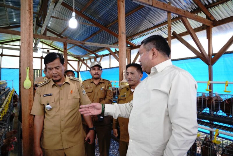Pakpak Bharat, Agara News.com //Bupati Pakpak Bharat, Franc Bernhard Tumanggor melihat langsung peternakan ayam petelur milik BUM Des Dlleng Lumut, Desa Sukaramai, Kecamatan Kerajaan. Sebanyak 200 ekor ayam petelur yang diternakkan unit usaha milik masyarakat desa Sukaramai ini terlihat sehat dan siap menghasilkan telur berkualitas.
