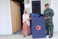 Aceh Utara,AgaraNews.com//Babinsa Desa Geulumpang Sulu Timur Koramil jajaran Kodim 0103/Aceh Utara, Serda Ikhwan, turun langsung mendampingi penyaluran bantuan kasur lipat dan matras dari BNPB…