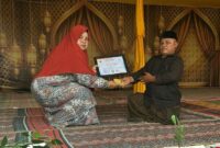 Suka Makmue : Tgk. Abu Bakar Menerima Piagam Penghargaan dari kepala Madrasah Ibtidaiyah Negeri (MIN 3 Nagan Raya) dalam mementum memperingati Maulid (Moulod )…